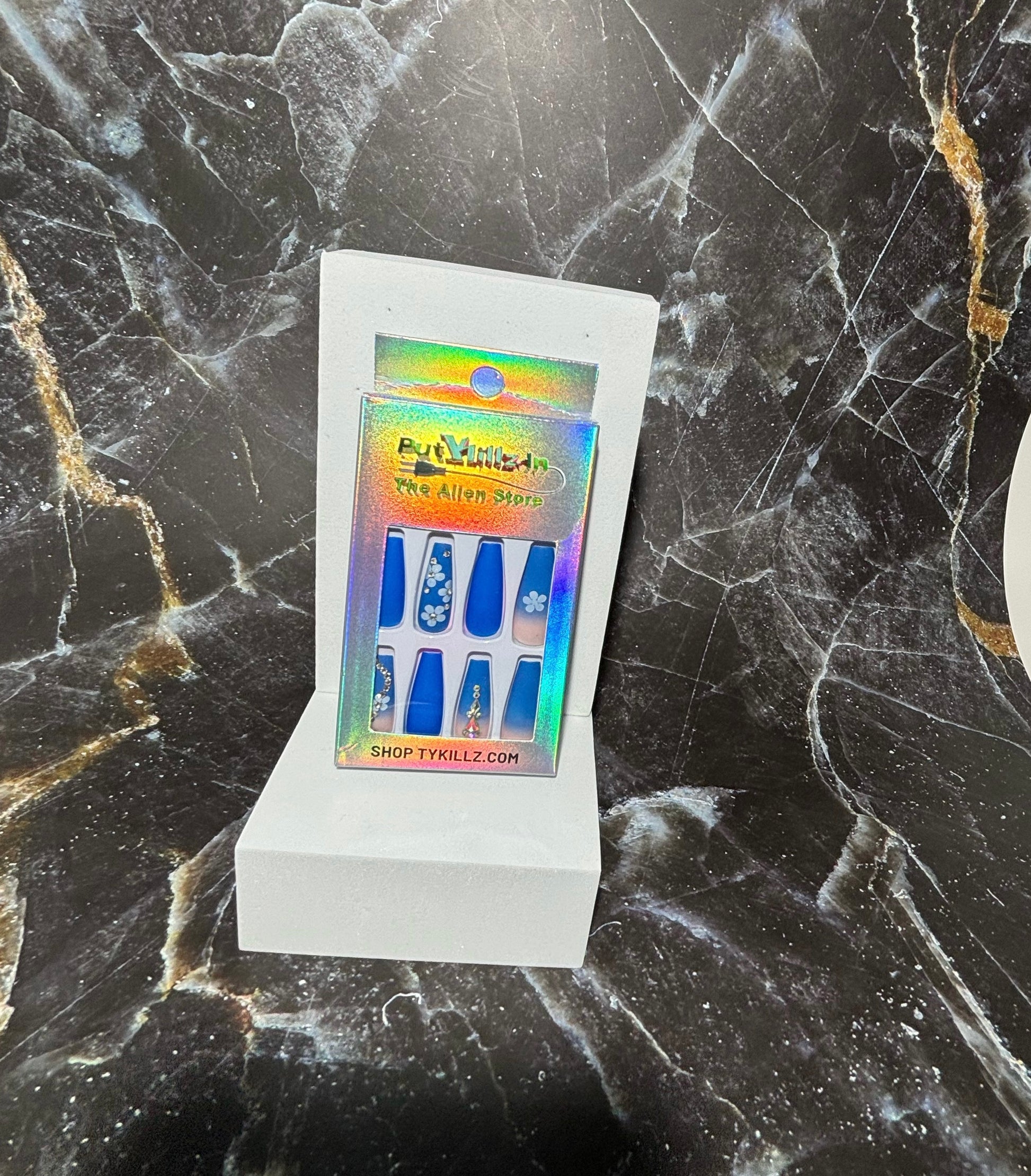 Bold. Elegant. Regal. These Long Blue Royal Press-On Nails bring a deep royal blue hue and sleek coffin shape for a luxe, eye-catching finish. Easy to apply, reusable, and perfect for leveling up any look.